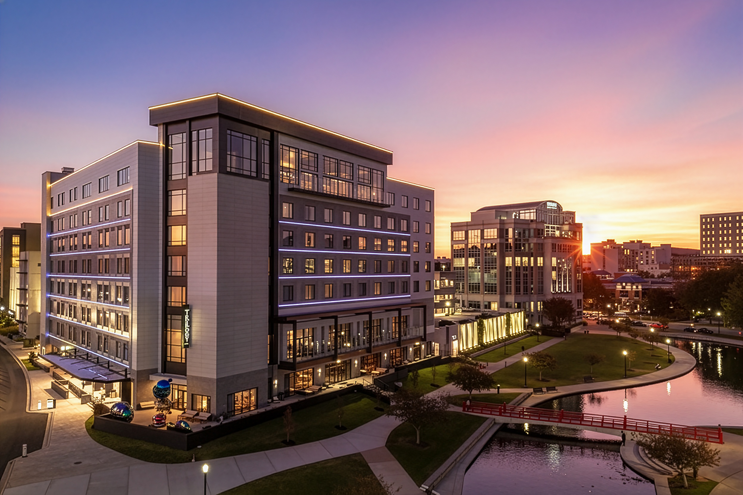 Trilogy Hotel is a 214-key boutique destination that celebrates Huntsville’s spirit of innovation, exploration, and forward momentum. Rising alongside Big Spring Park and woven into the cultural fabric of downtown, the hotel was conceived as both a landmark and a living room for the city—a place where visitors arrive, locals gather, and the energy of Huntsville flows seamlessly through.