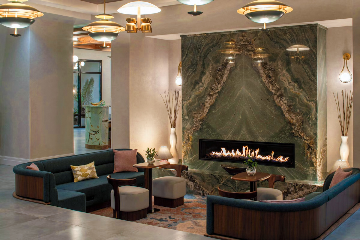 The design draws inspiration from the city’s aerospace legacy and mid-century modern roots, reinterpreted through a contemporary lens. Clean lines, sculptural forms, and intentional geometry are softened by warm materials, layered textures, and moments of bold color. The result is an environment that feels refined yet approachable—optimistic, energetic, and distinctly local. Light is treated as a design material in itself, captured and framed through expansive glazing that opens the interiors to sweeping views of the park, skyline, and surrounding landmarks.